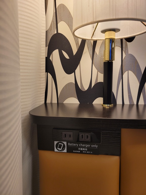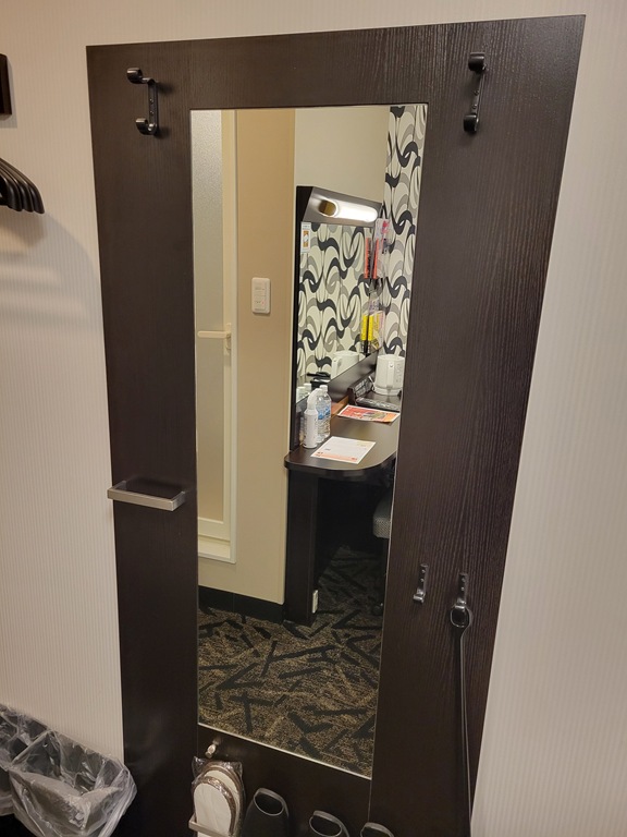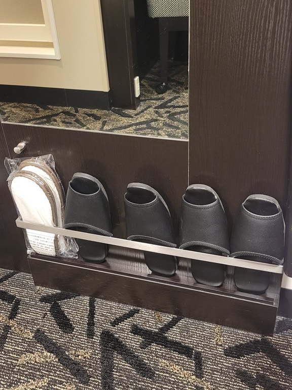 スリッパも二種類あり、鏡には足元用のコンセントも写っている。
