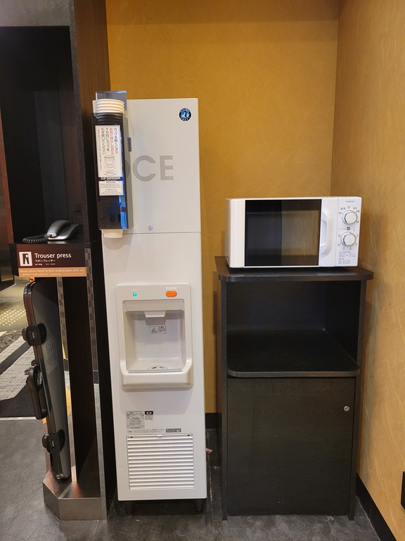 大浴場の近くには氷と電子レンジとズボンプレッサーのサービス。