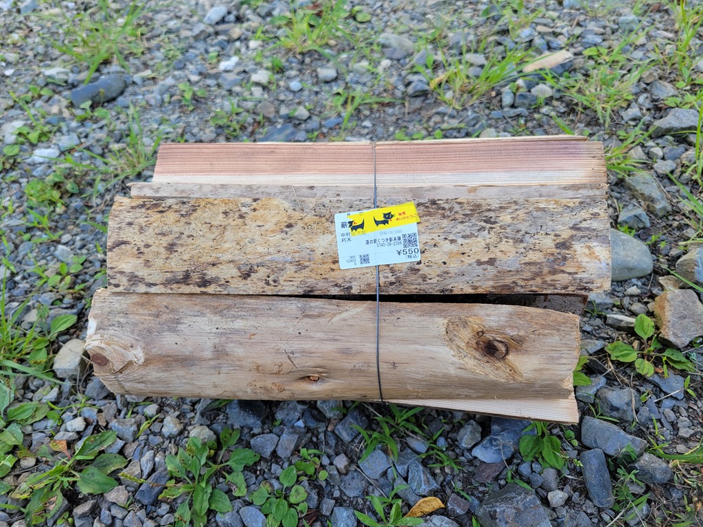 以前に、くつき新本陣道の駅で購入した薪。![]()