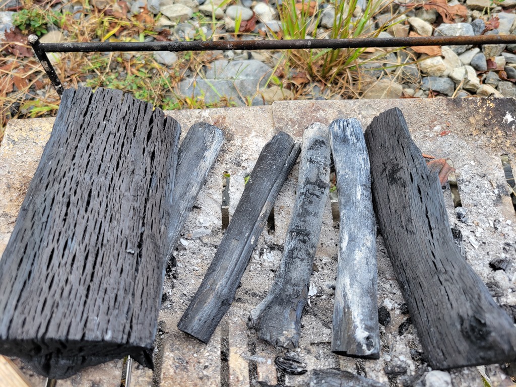 細めの木炭から太いのまでいろいろあるのは着火効率を上げるためでしょう。