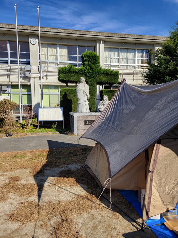 校舎前が空いていたが、ここにテントを張っても良いのだろうか?