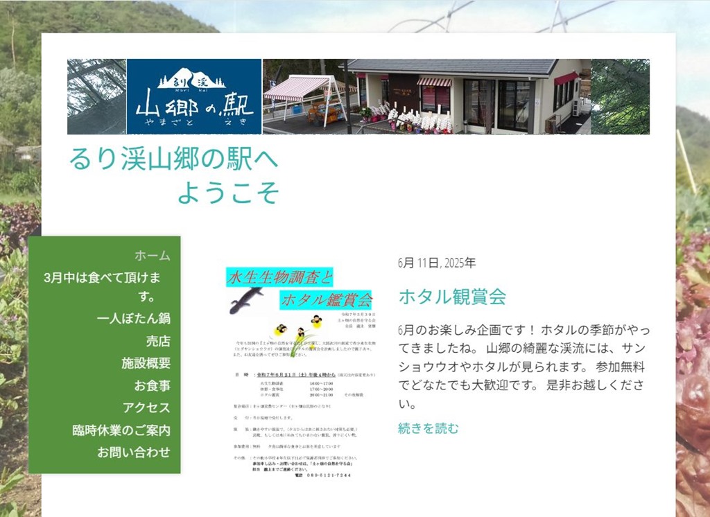 るり渓山郷の駅HPより