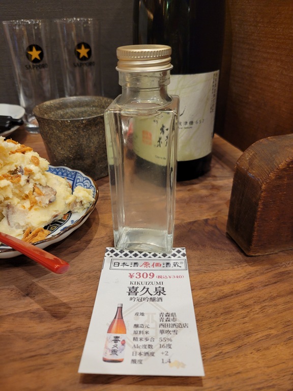 まずは水が美味しいであろう東北のお酒「喜久泉」を注文。