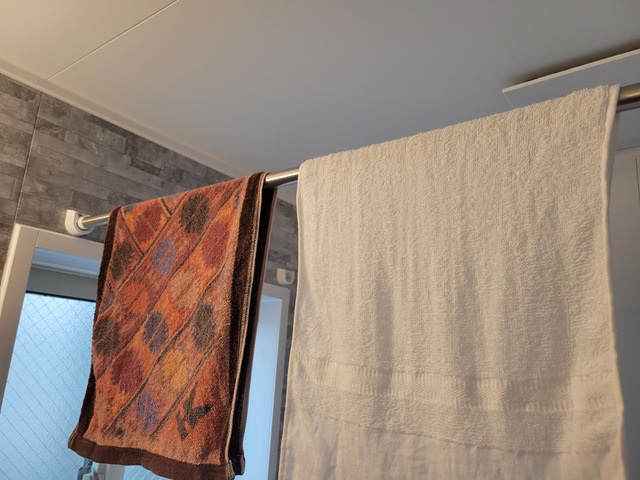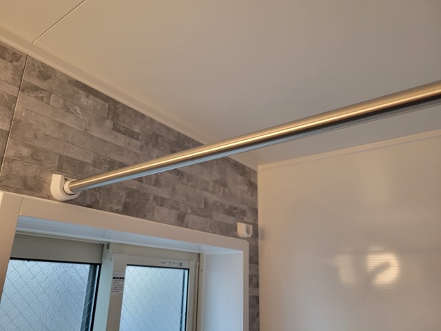 ランドリーブラケットもつけてもらったので物干し竿を使って洗濯物などを乾かすこともできる。